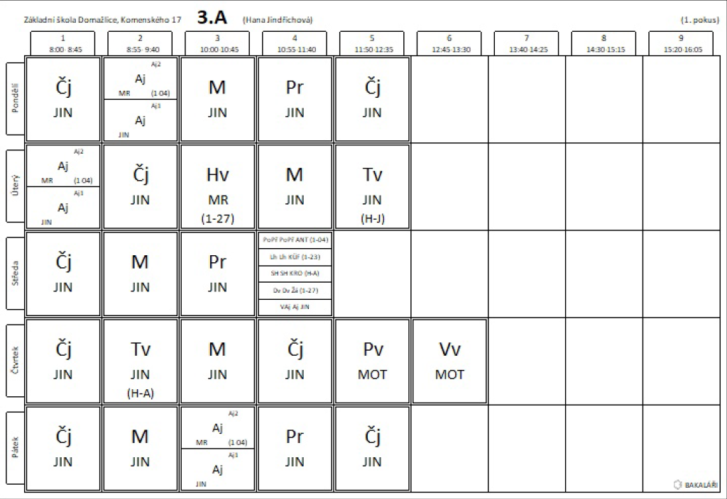 Rozvrh ZŠ Kom 17