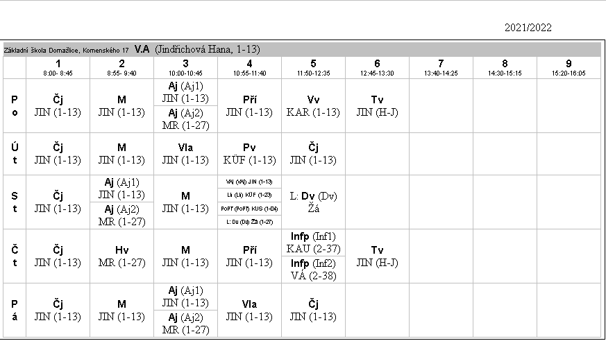 Aktuální rozvrh hodin naleznete zde:Rozvrh ZŠ Kom 17
